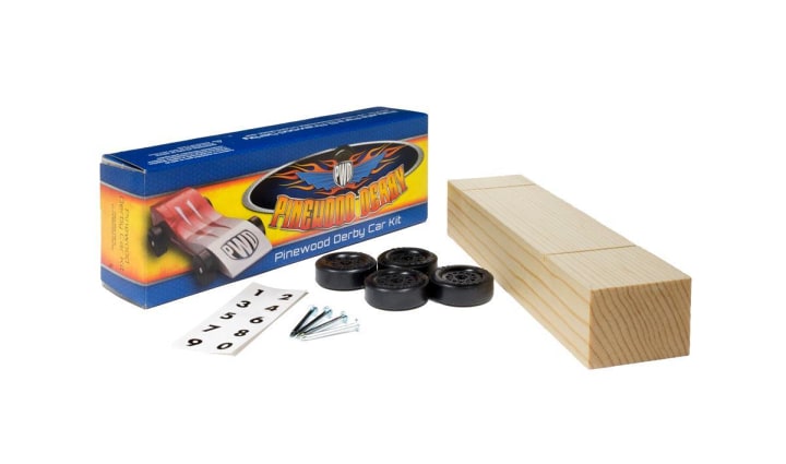 A pinewood derby is a racing event for unpowered, unmanned miniature cars. Pinewood derbies are often run by Packs of the Cub Scouts program of Scouting America. Scouts build their own cars with adults' help from wood, usually from kits containing a block of pine, plastic wheels, and metal axles.